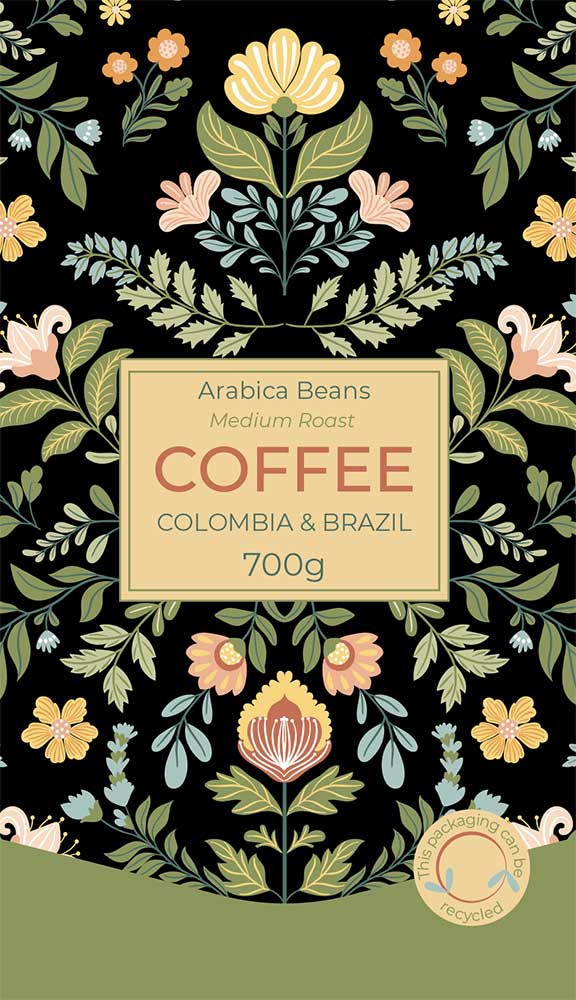 Medium Roast, 100% Arabica whole coffee beans. 700g